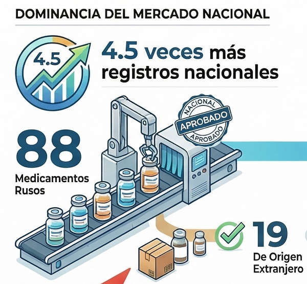 - Medicamentos Nacionales (82,2% del total): Se aprobaron 88 nuevos registros de origen ruso.